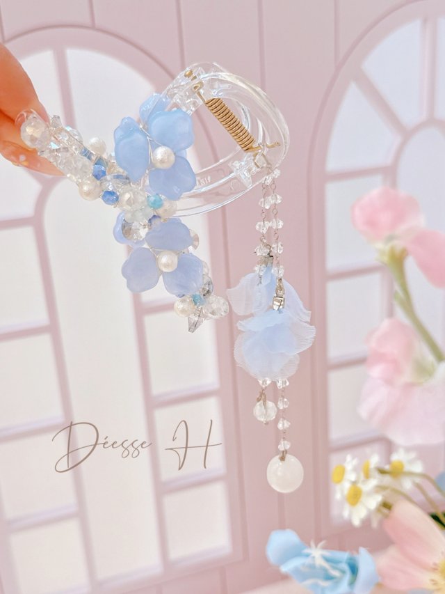 韓國藍色花花流蘇抓夾