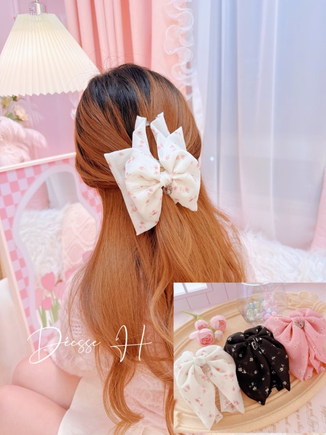 韓國碎花蝴蝶結抓夾