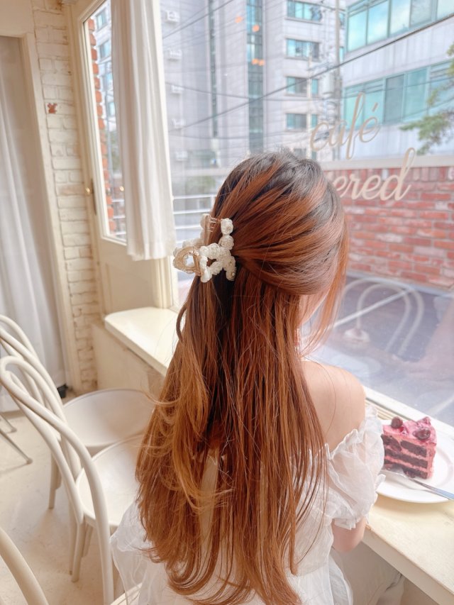 韓國小香風珍珠蝴蝶結抓夾
