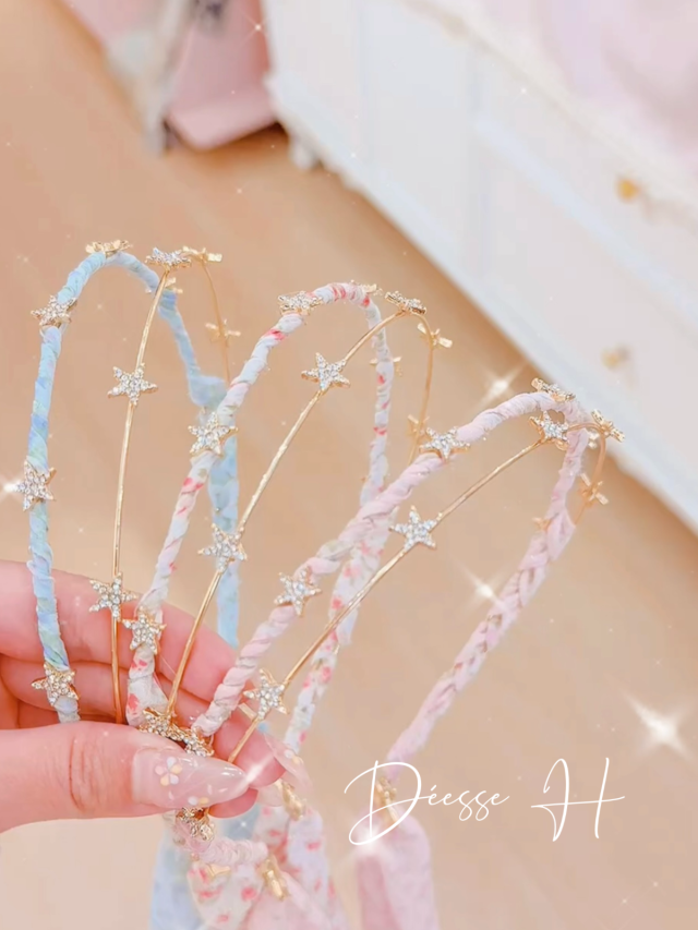 韓國春季新款雙層星星碎花絲帶頭箍