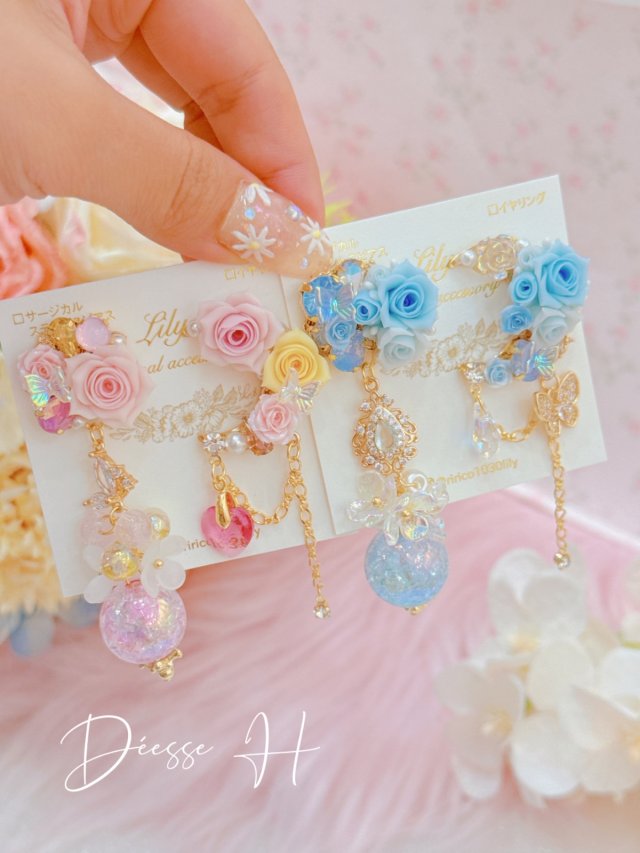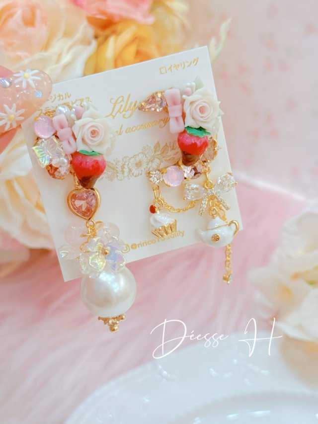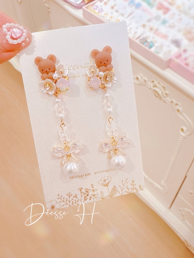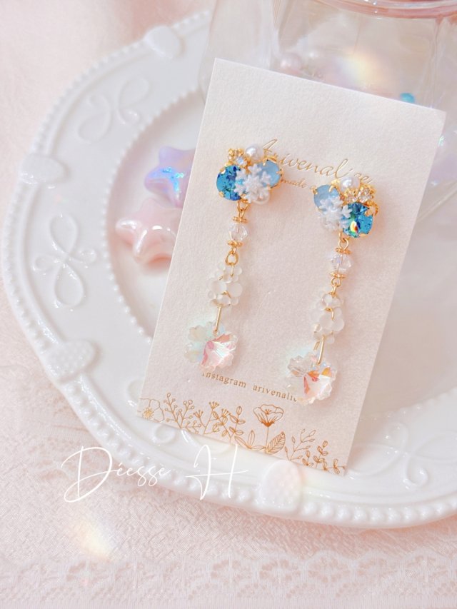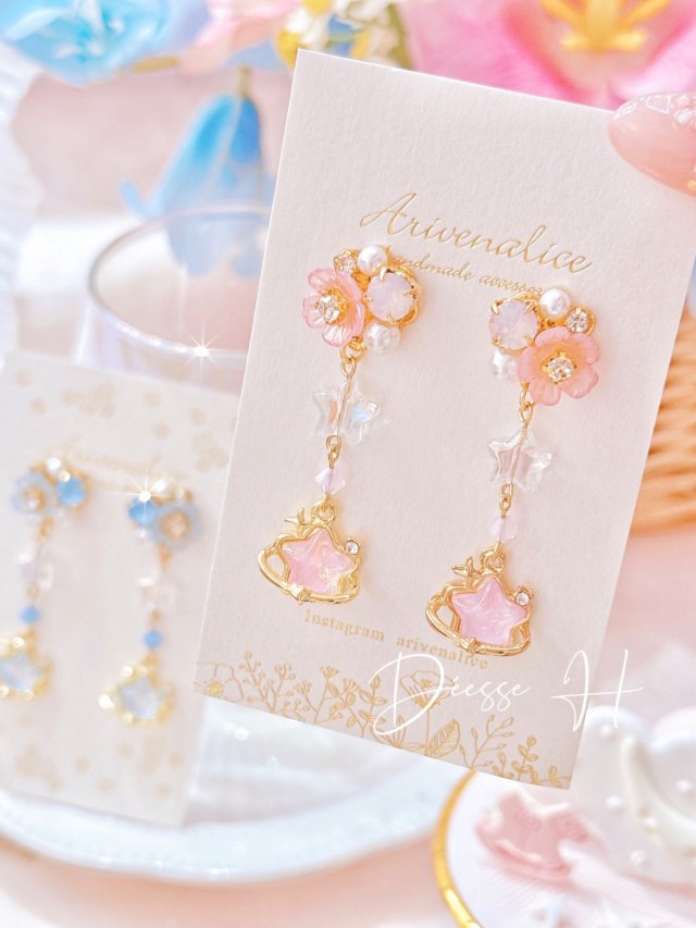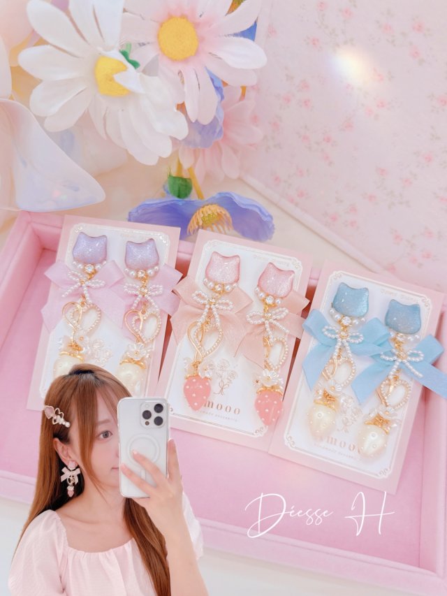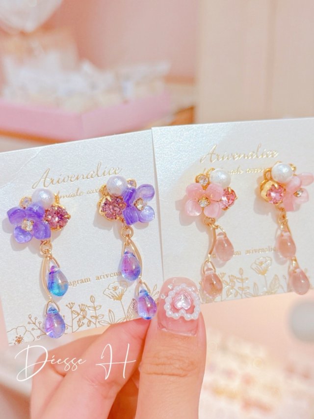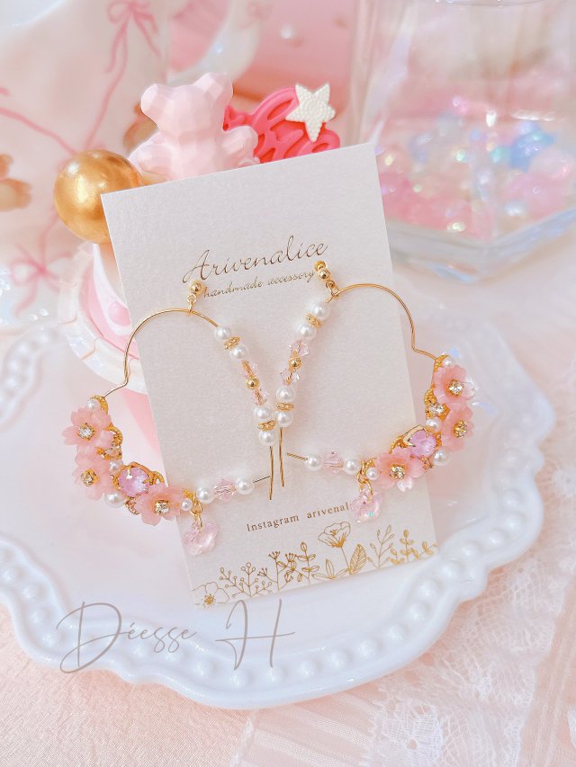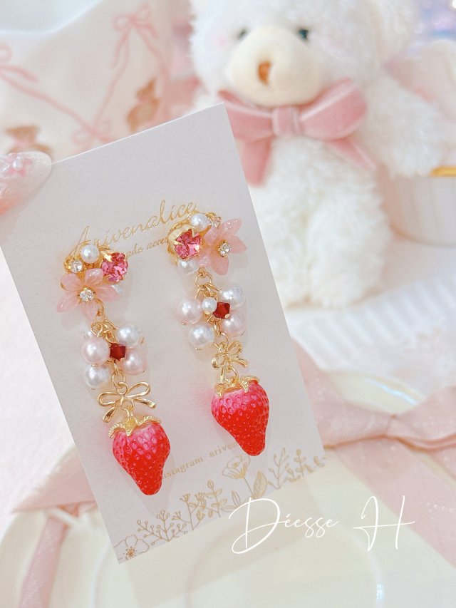 【日本手作】氧氣士多啤梨花花水晶耳環