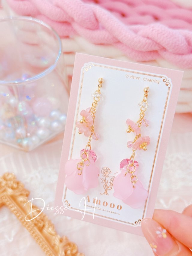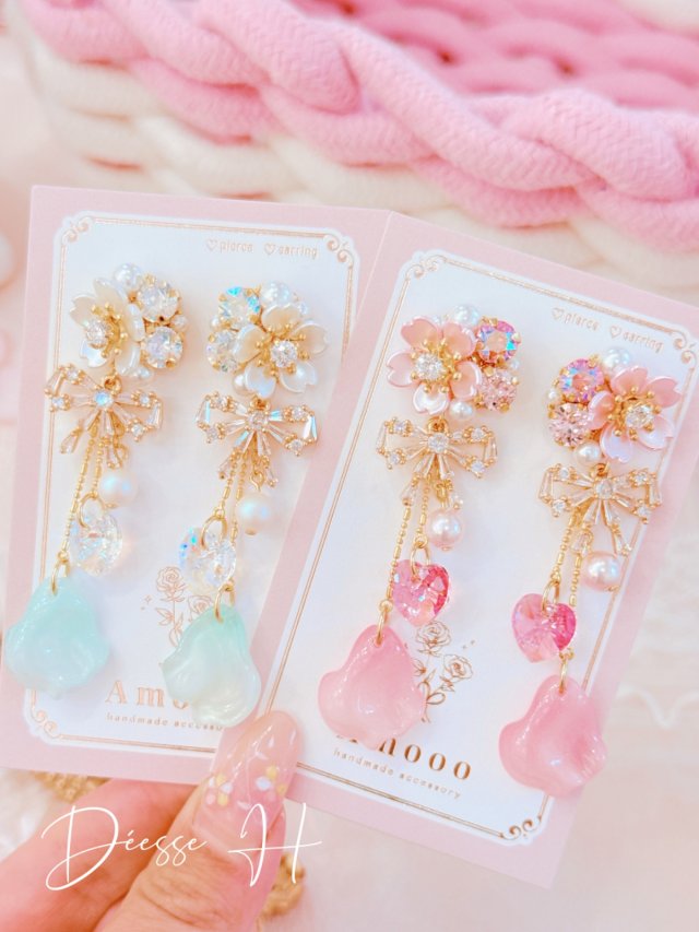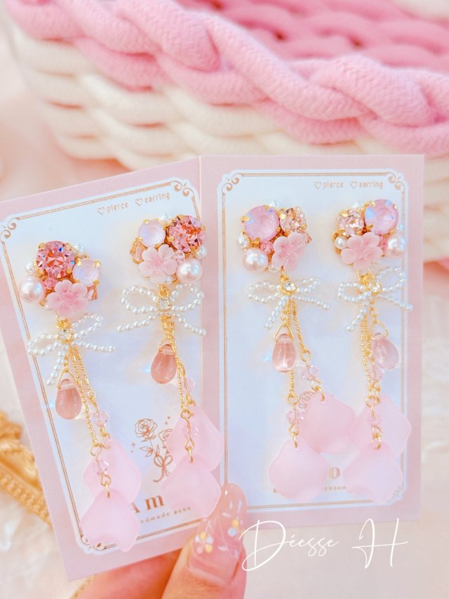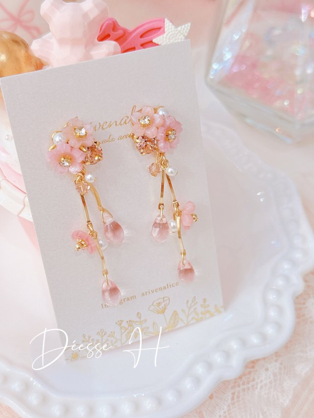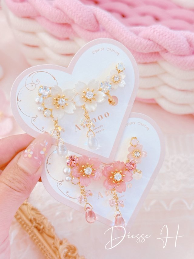 【日本手作】仙氣不規則流蘇櫻花耳環