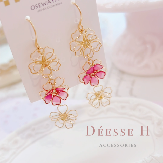 【日本手作】仙氣不規則流蘇櫻花耳環