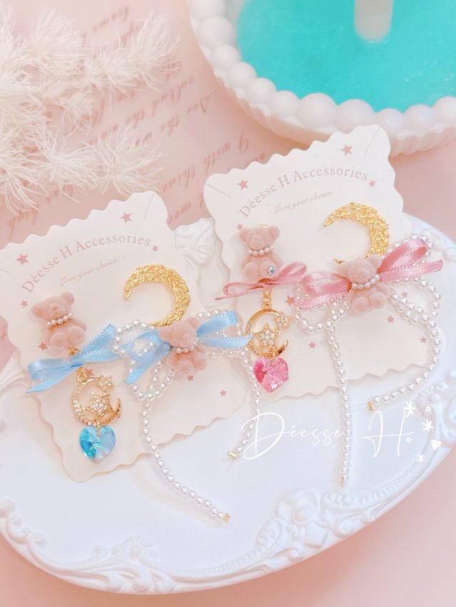 韓國施華洛水晶月亮熊仔2 way耳環