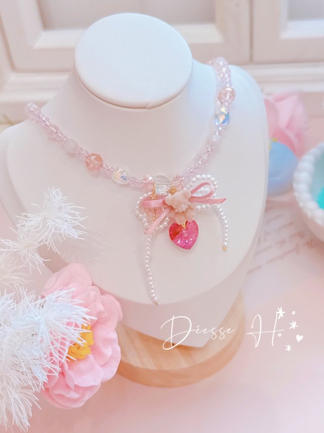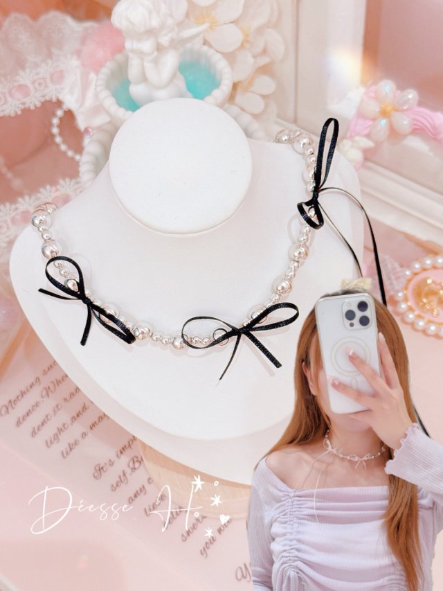 韓國蝴蝶結銀珠choker