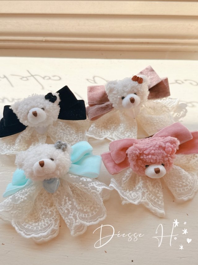 韓國牛角包熊仔耳環/髮夾