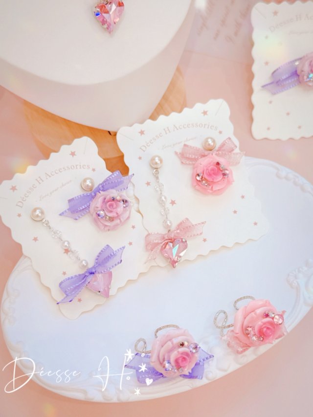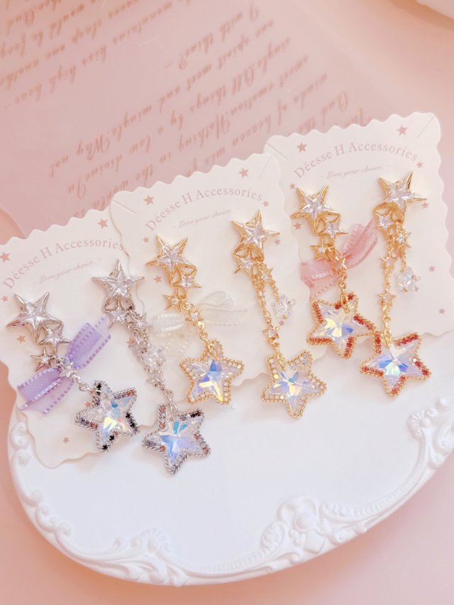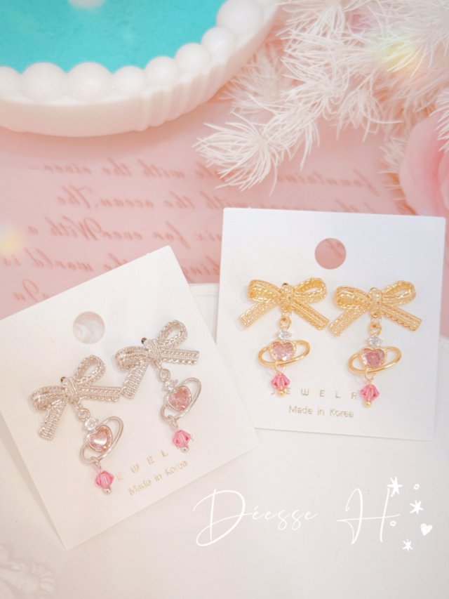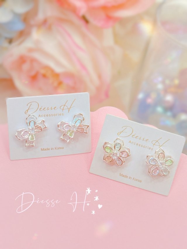 韓國彩虹水鑽蝴蝶結/花花耳環