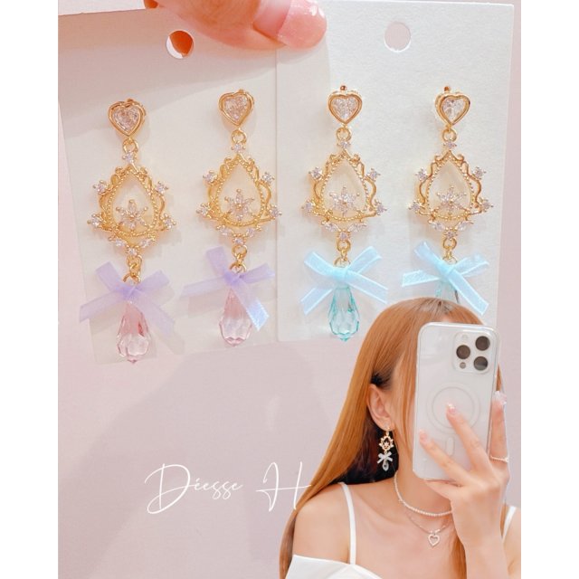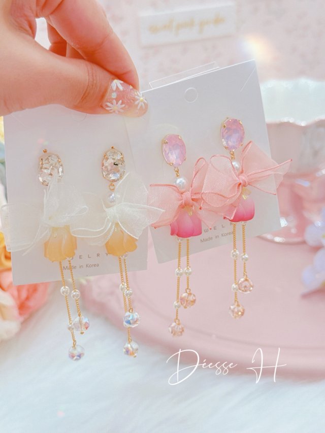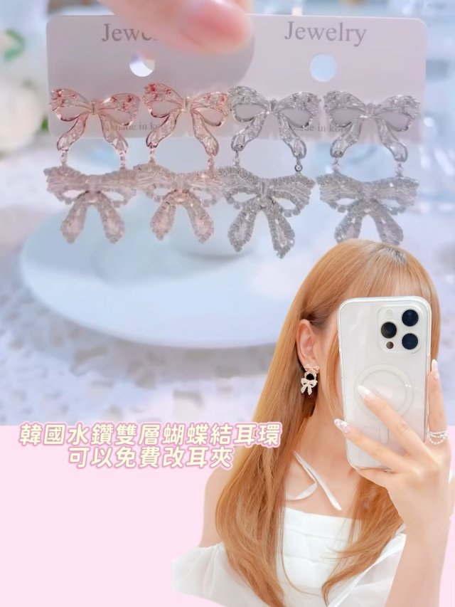 韓國愛心水鑽蝴蝶結輕紗髮夾