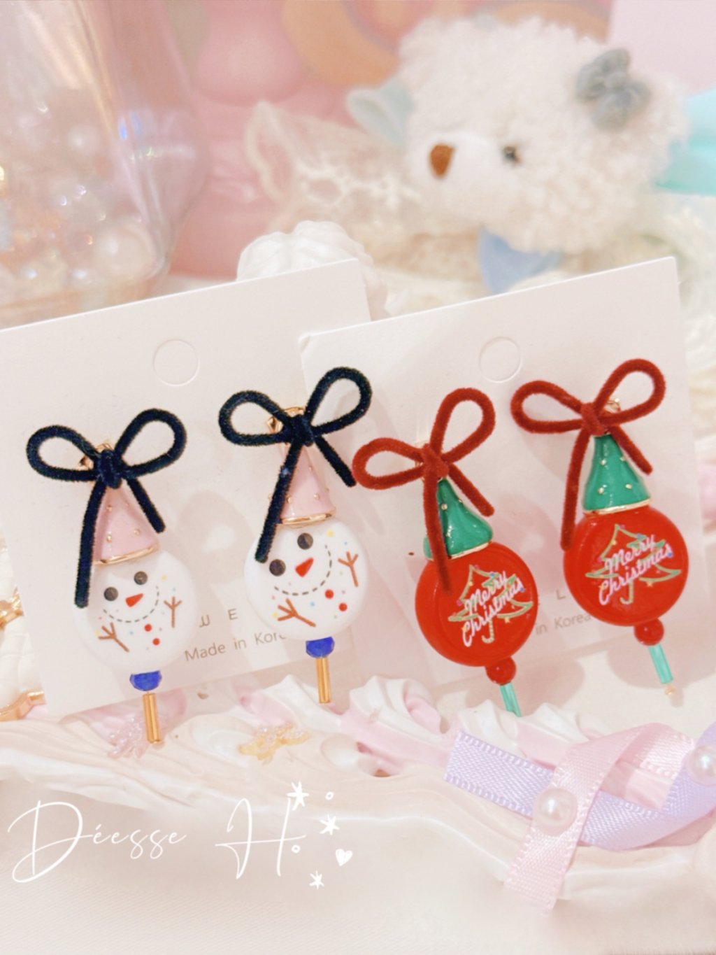 韓國聖誕波板糖蝴蝶結2 way耳環