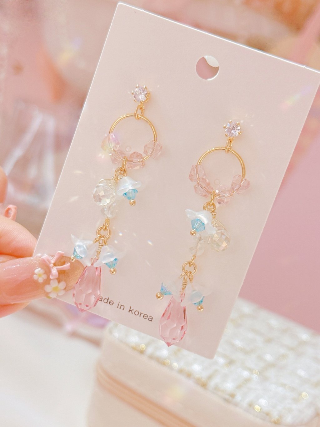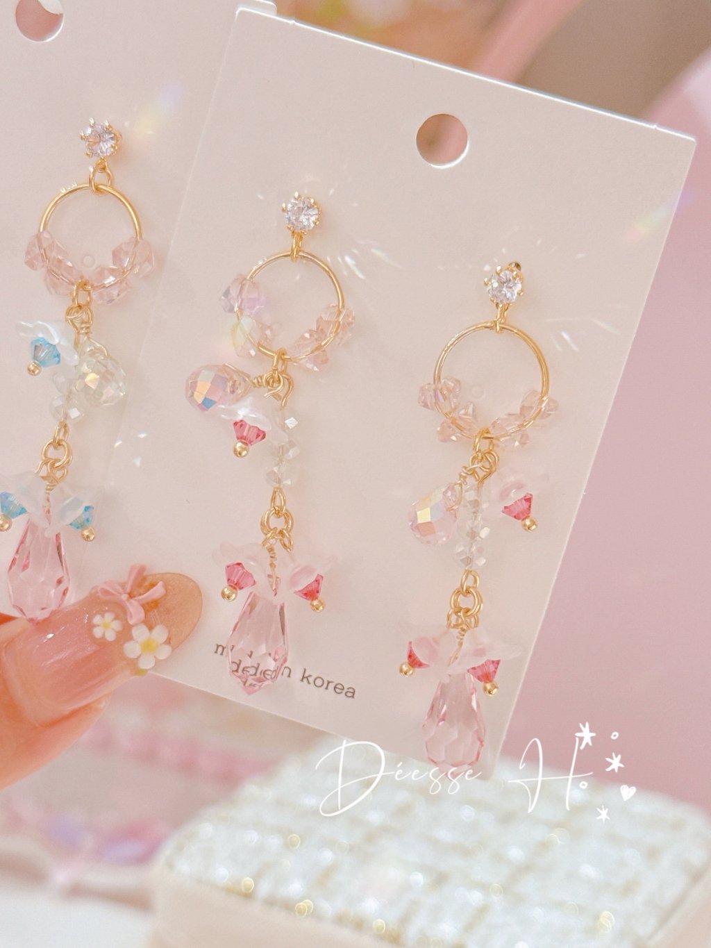 韓國水晶流蘇耳環