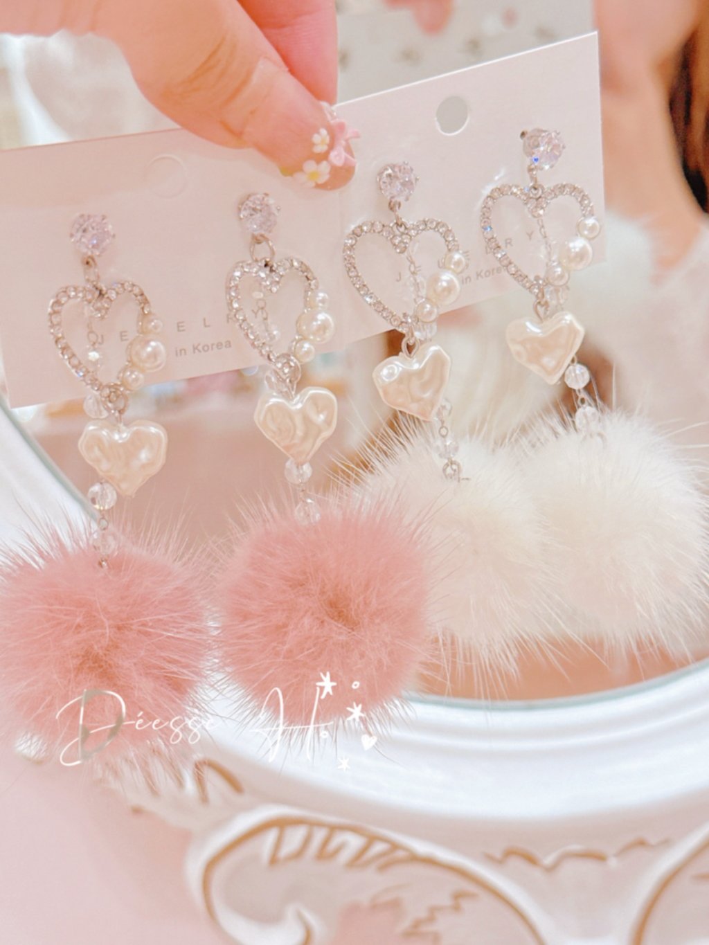 韓國人氣珍珠心心毛毛耳環