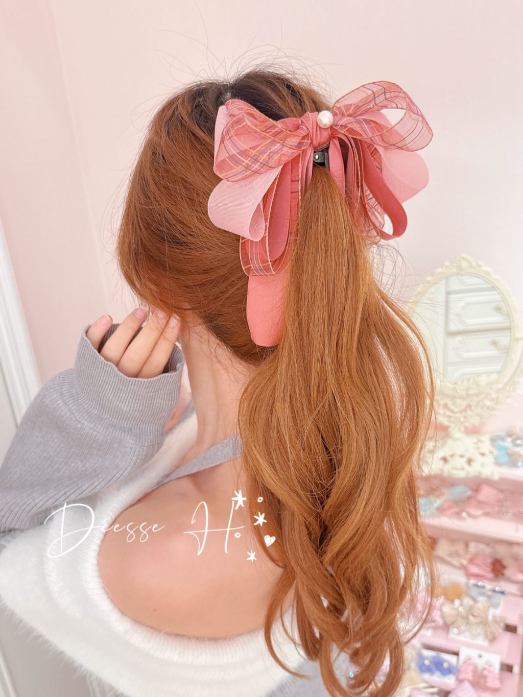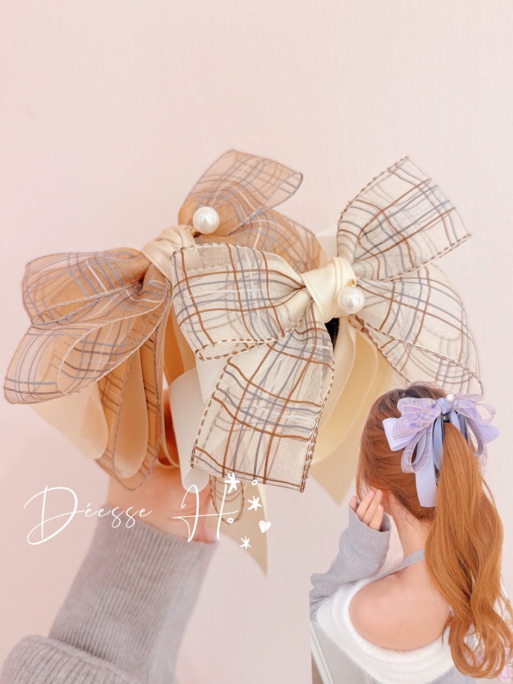 韓國薄紗格紋香蕉夾