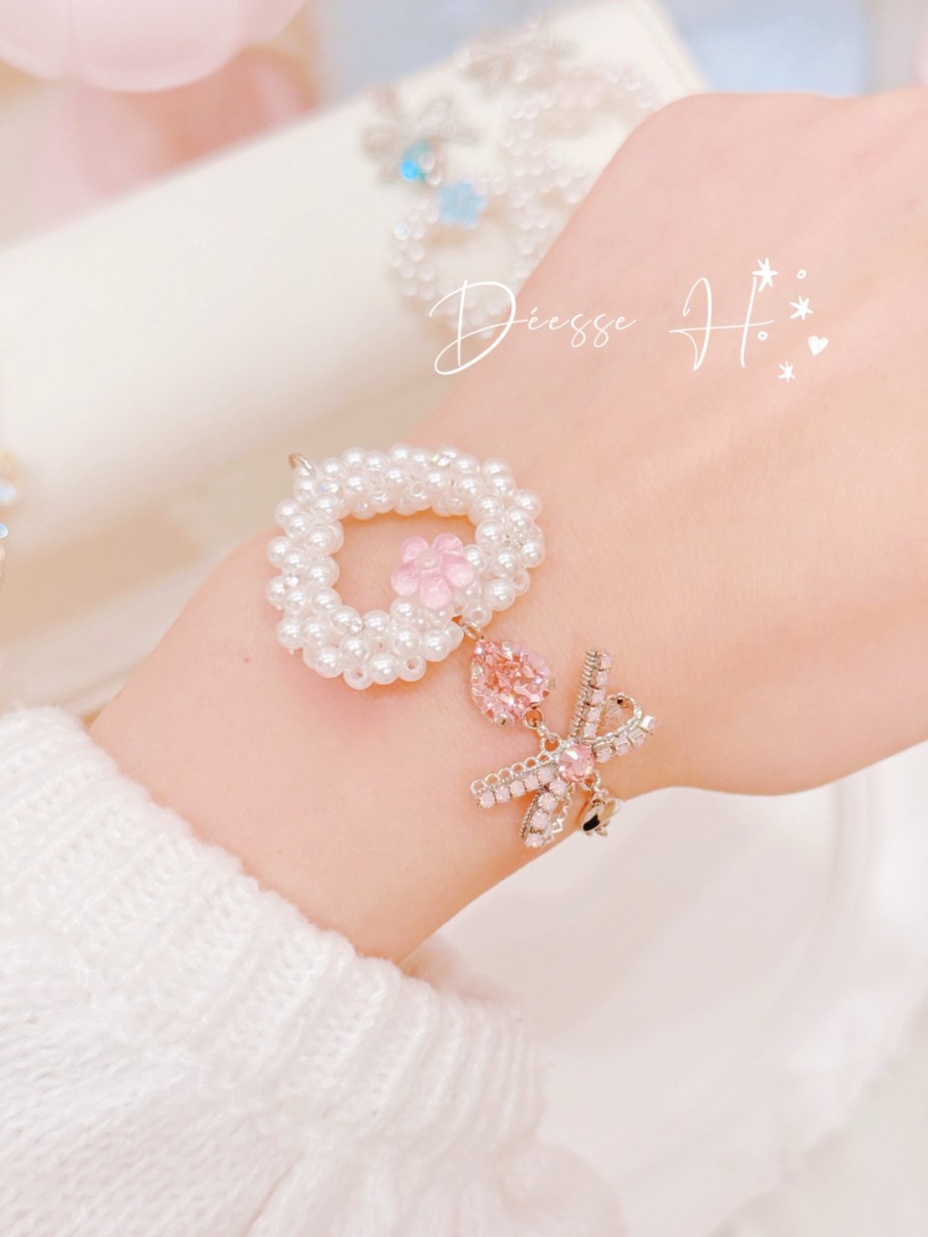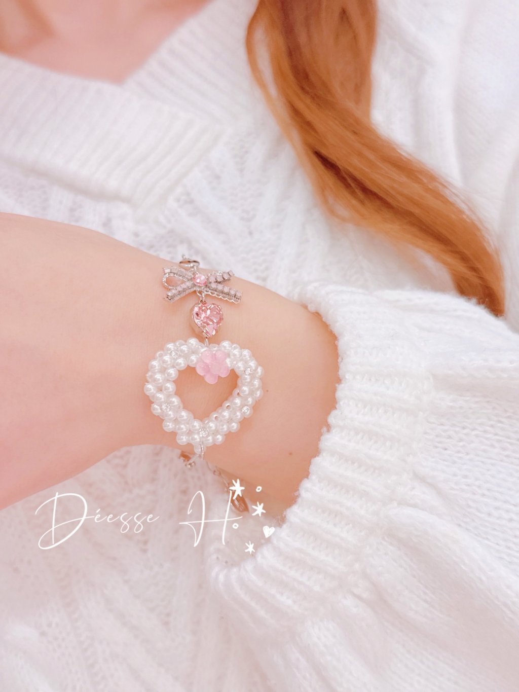 日系鏤空愛心珍珠手鏈