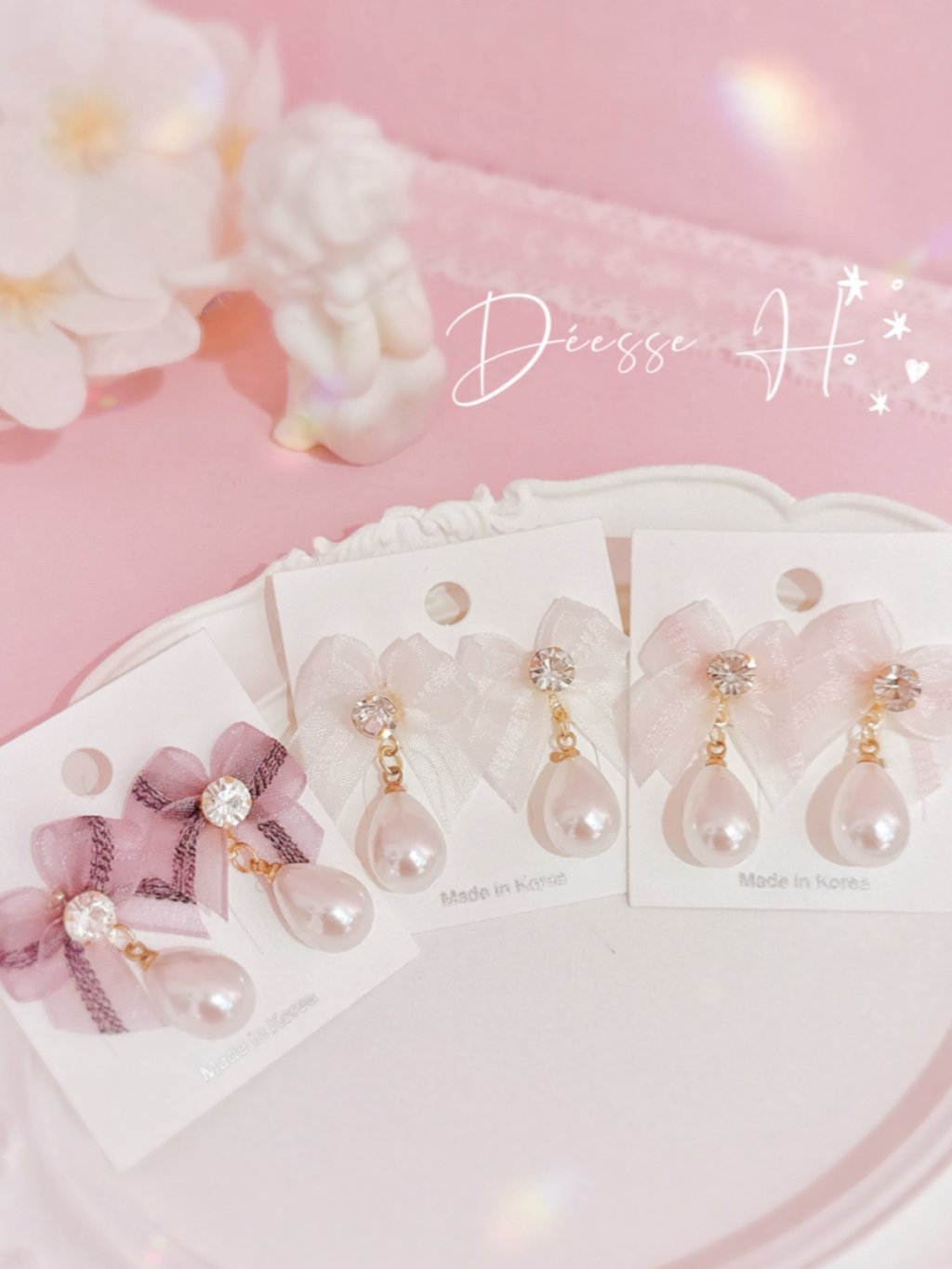 韓國輕紗蝴蝶結珍珠耳環
