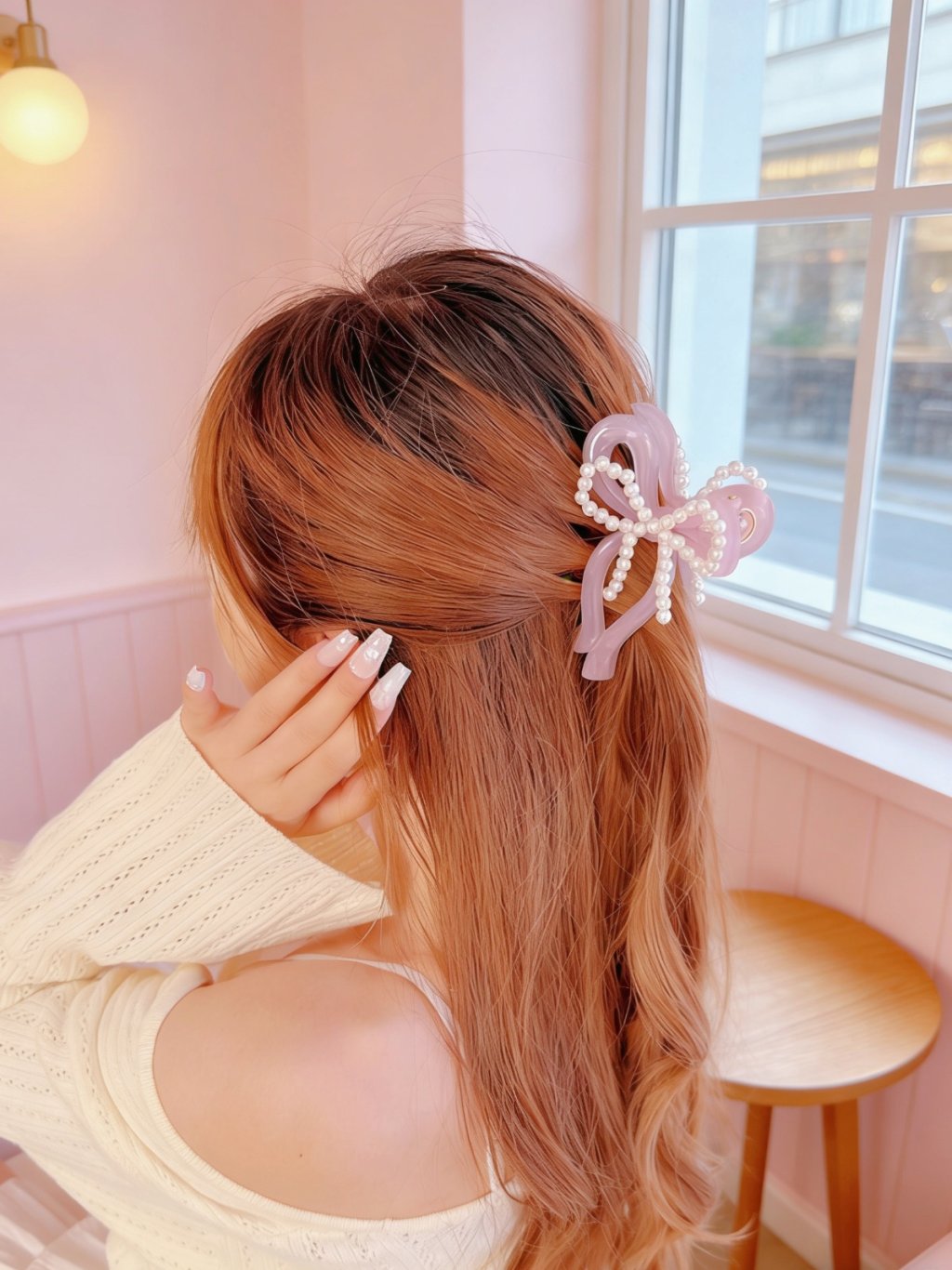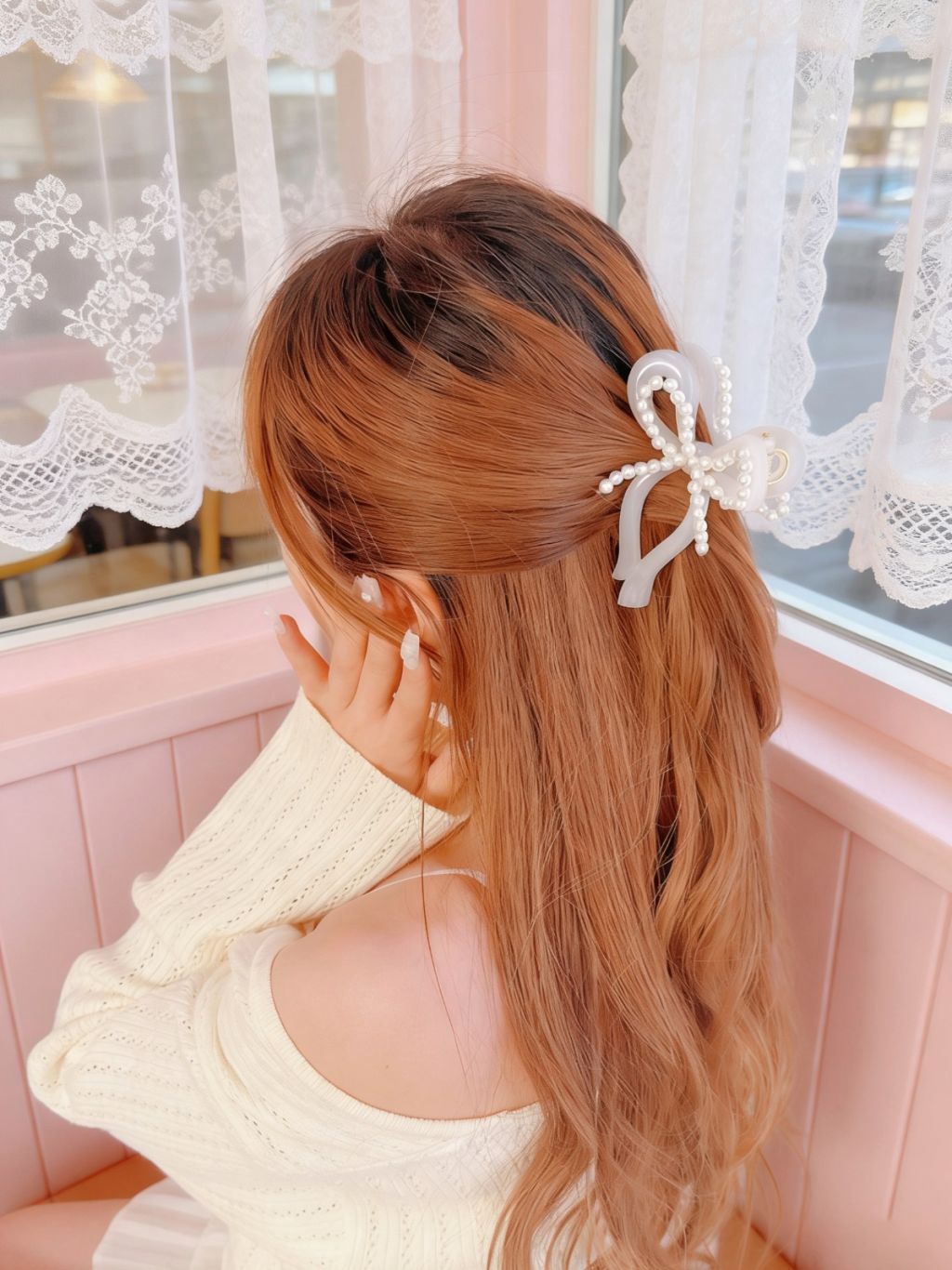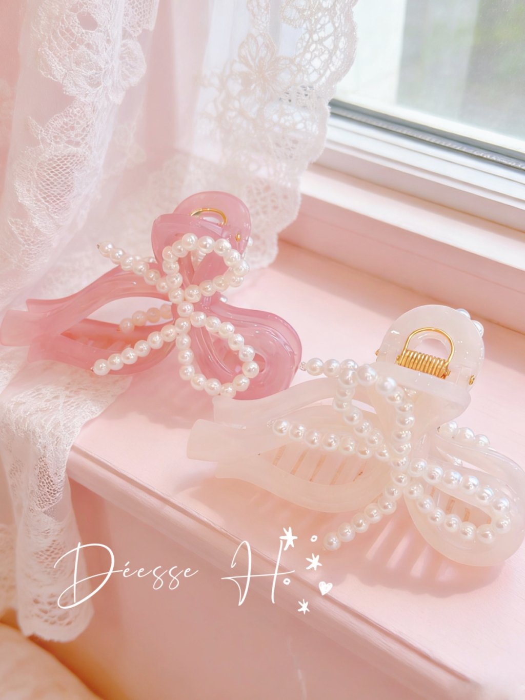 韓國珍珠蝴蝶結抓夾